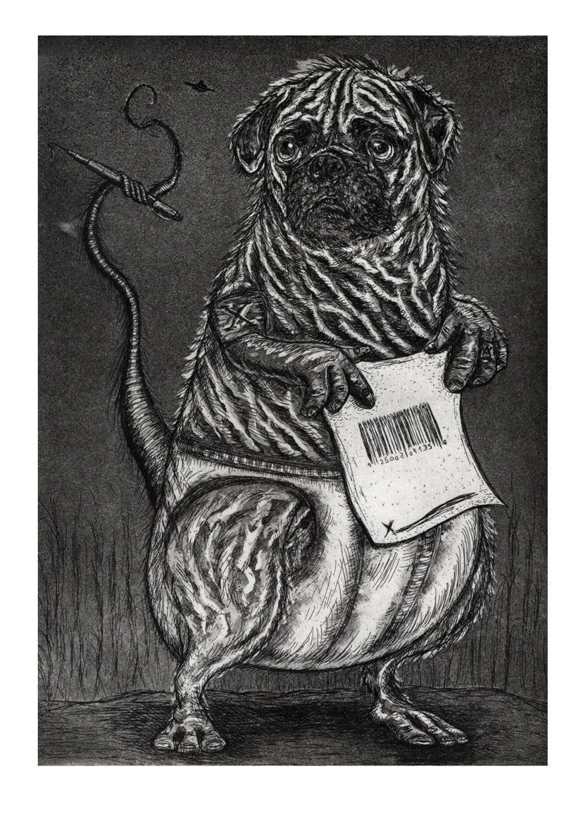 "I smell a Rat", Etching with Aquatint 8x10 Arches Paper.